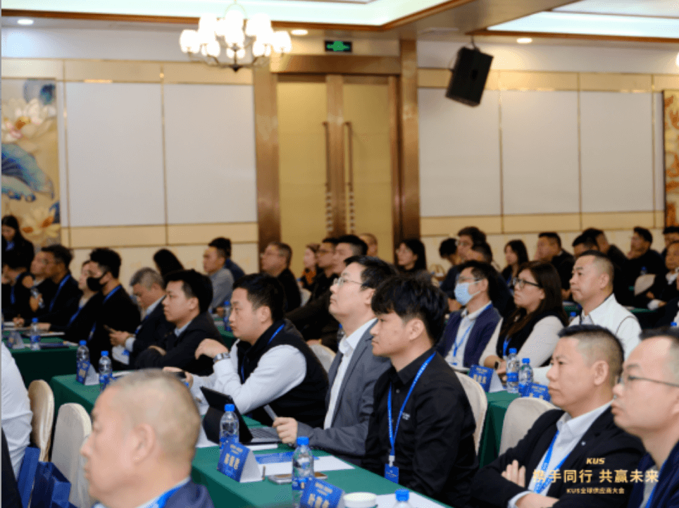 本次大会汇聚21家国际品牌供应商与179家国内民营企业代表,覆盖供应链各核心环节。KUS集团多位高管发表主题报告,深度解析行业趋势与供应链布局战略。KUS集团董事长顾一新先生在致辞中,阐述了企业家的责任与担当,引用吉姆·柯林斯五级领导人理论倡议协同共创,并结合企业成长历程与时代背景诠释使命,引发全场共鸣。颁奖典礼上,顾一新董事长为32家优秀合作企业颁发四大类奖项,彰显了KUS集团与供应商之间稳固互信的战略合作伙伴关系。